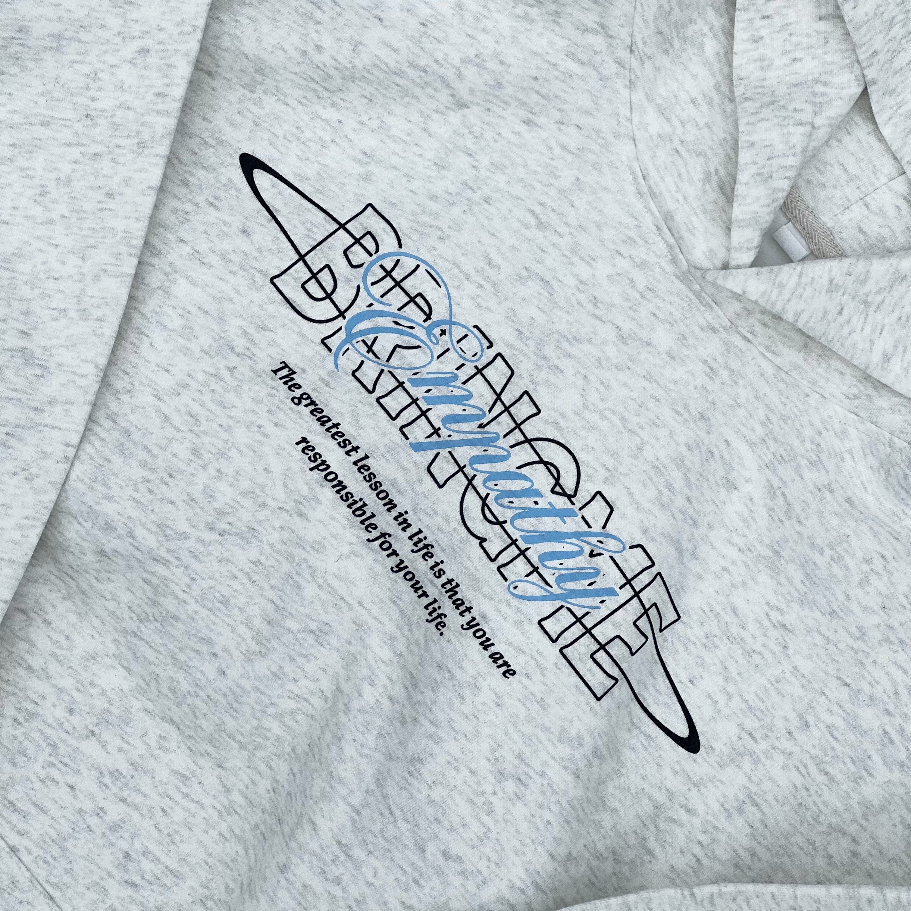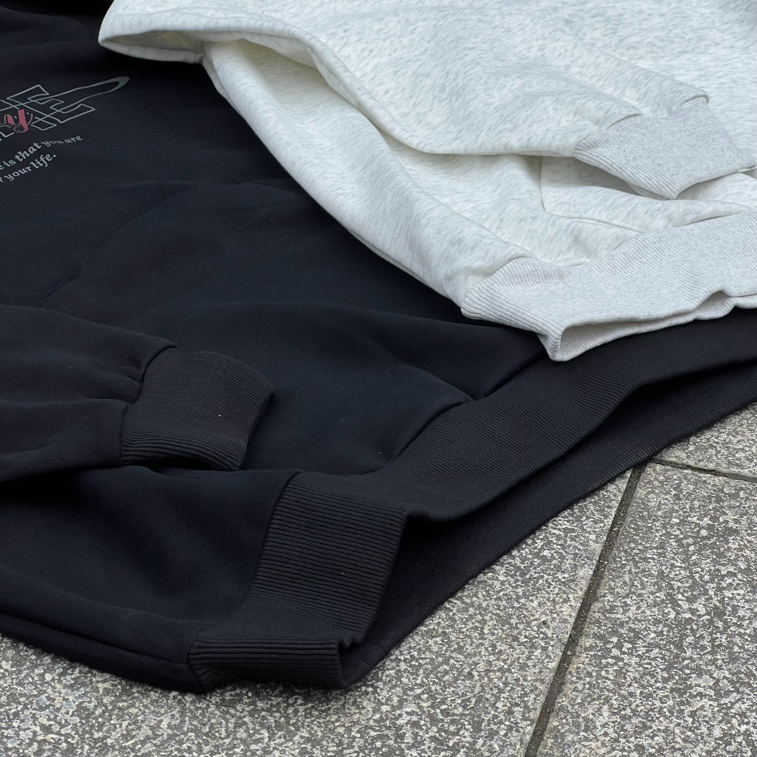 BRINGME 撞色印花帽T 黑 燕麥白 L3936