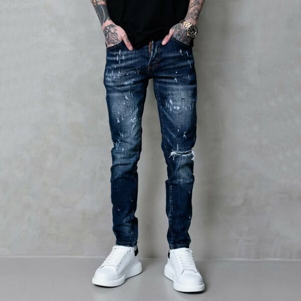 FABULOUS 蔚藍海岸深藍色潑漆牛仔褲 G302