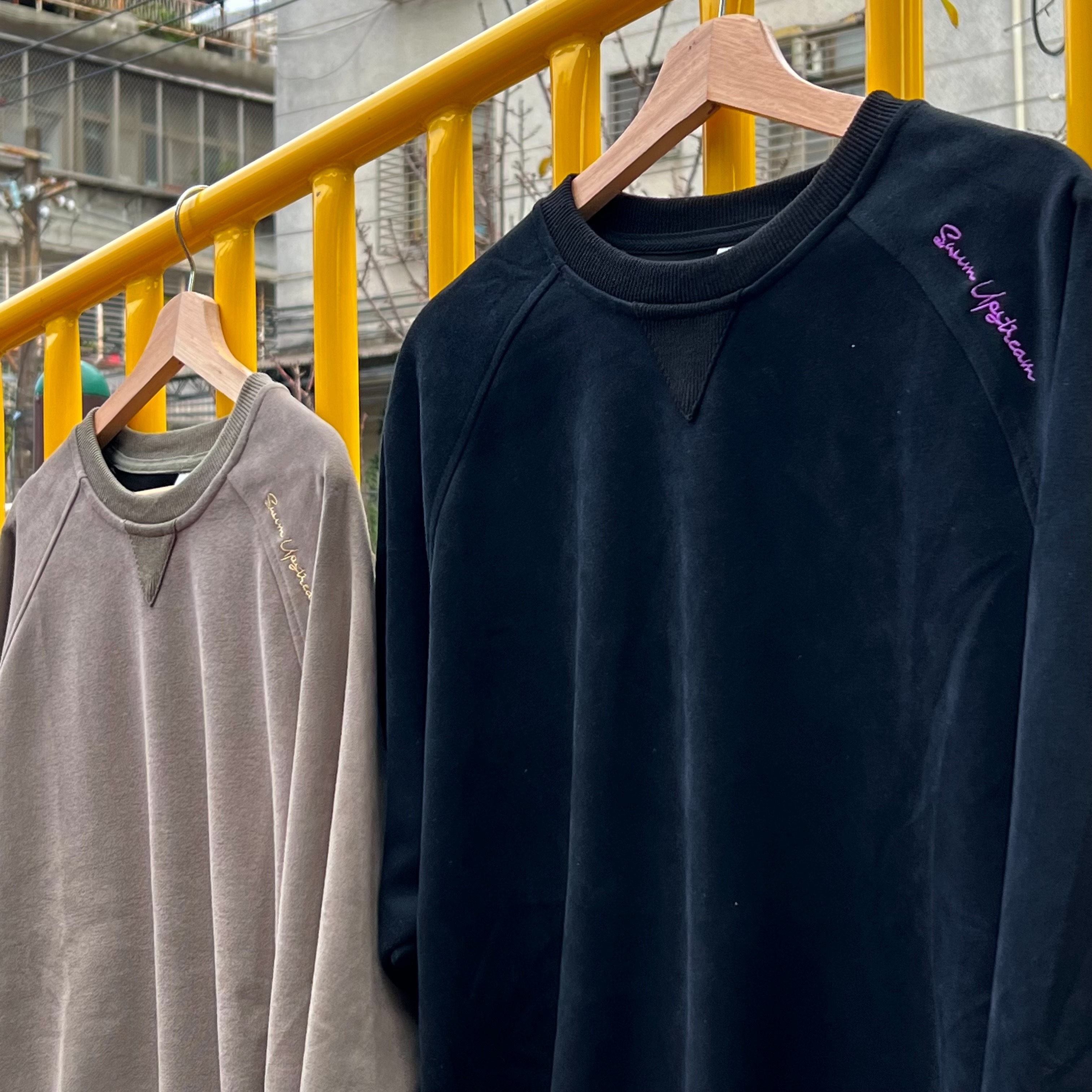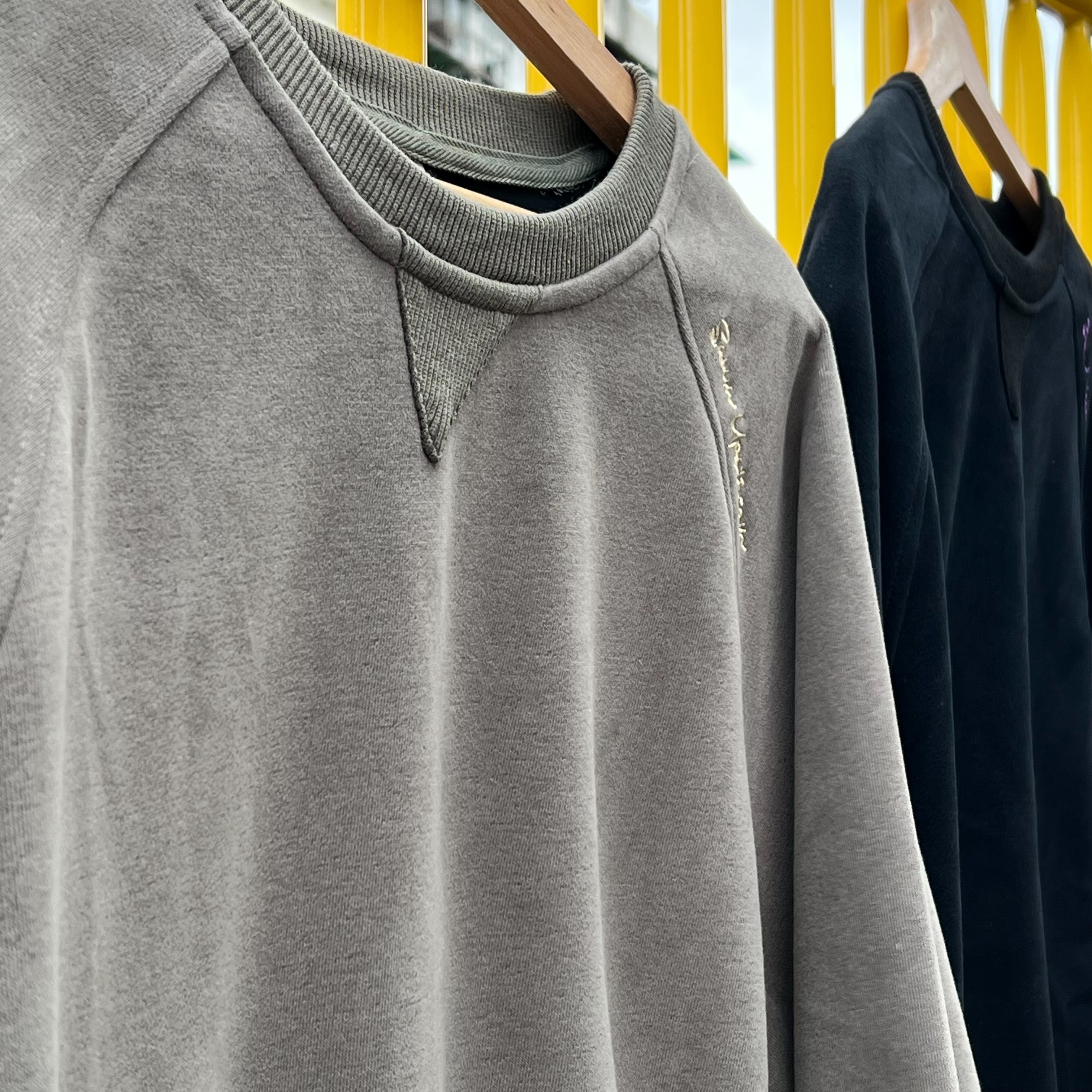 400G刺繡圓領拼接衛衣 黑 灰綠 燕麥灰 L3895