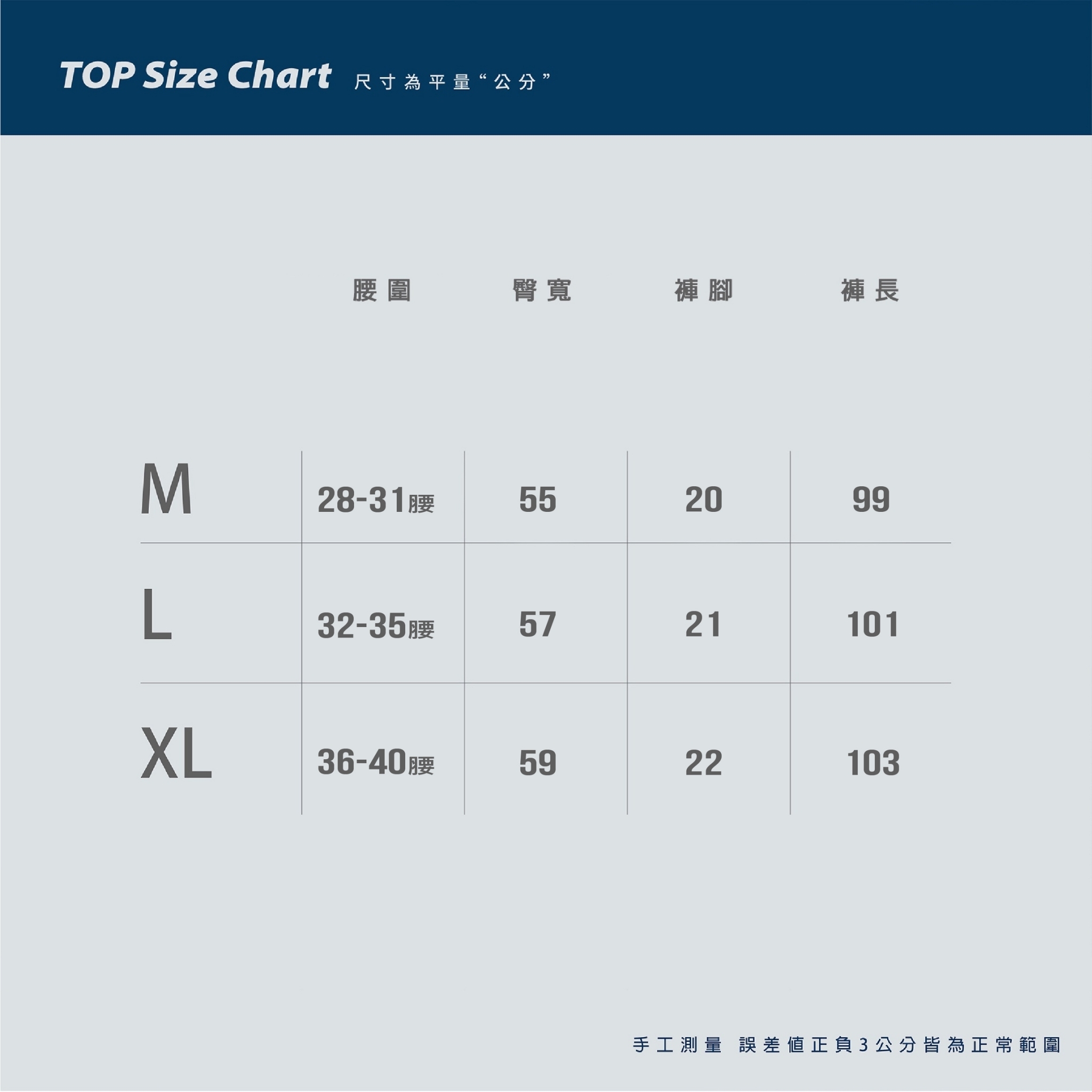 實際每個尺碼都還能再穿大1~2腰