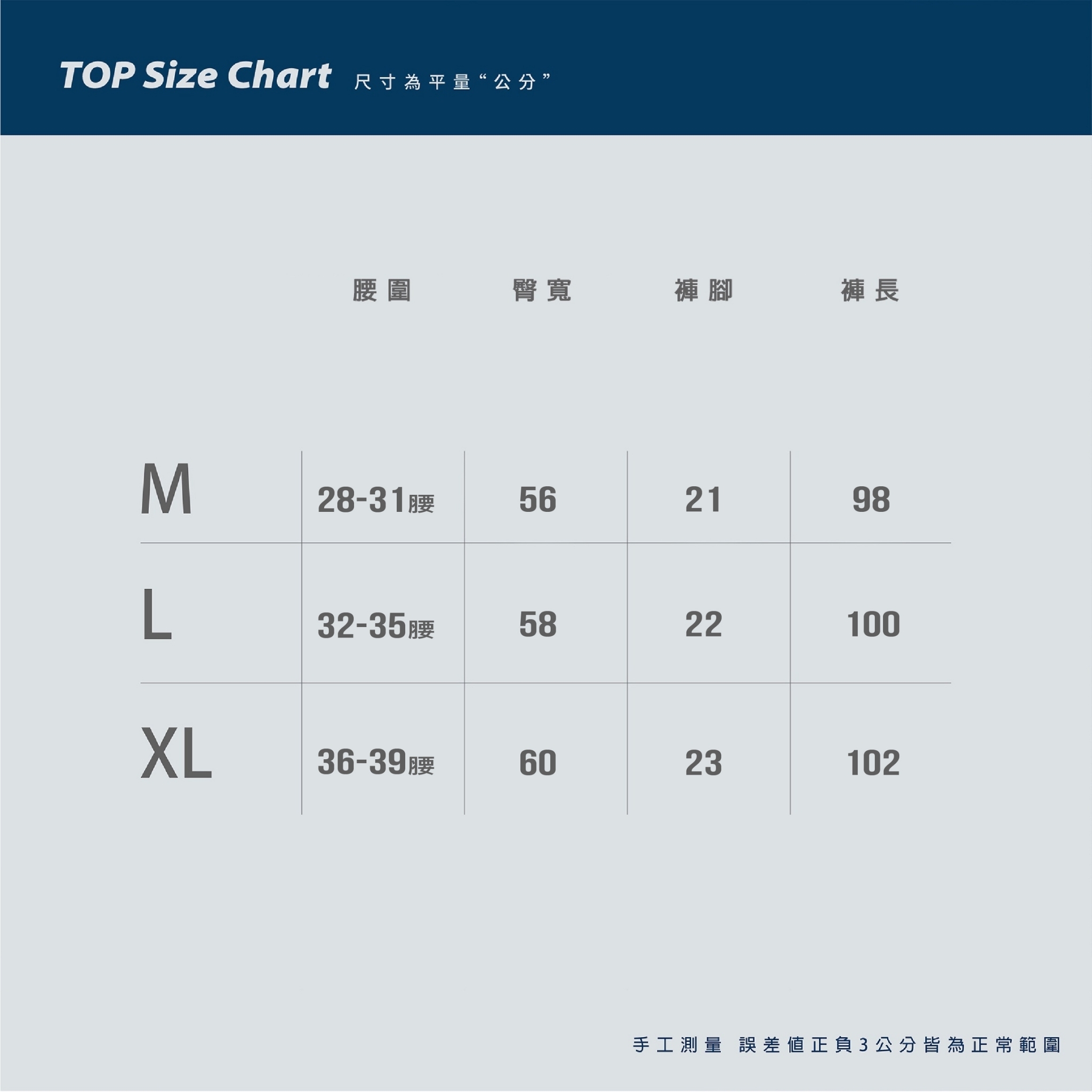 XL建議36~39腰